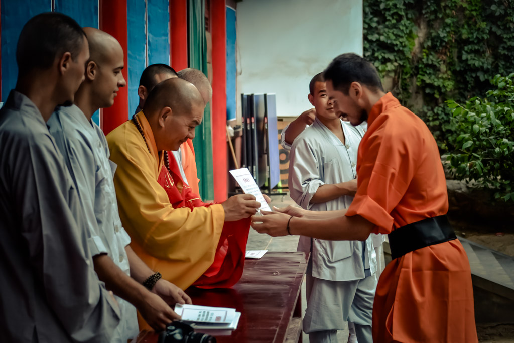 Κιτσώνη Δημήτρη βάζοντάς τον κάτω από την σκέπη του με το όνομα Σι Γιάν Σι 释延希 (Shì Υán Χī). Ο ηγούμενος Σι Γιόνγκ Σιν, αναγνωρίζοντας το έργο των Ελλήνων δασκάλων στην χώρα τους που το απέδειξαν περίτρανα με τον αριθμό των μαθητών που ακολούθησε την φετινή μας αποστολή, με χαρά αποδέχτηκε το αίτημα του Έλληνα απόστολου να γίνει μαθητής του ναού ώστε να βοηθήσει στο "έργο ζωής" που έχει δεσμευτεί να ακολουθήσει ως δάσκαλος παραδοσιακού Σαολίν Κουνγκ Φου.